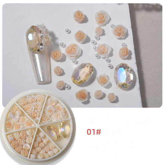Nail Charm 3D Rose Flower with Pearl and Oval Rhinestone