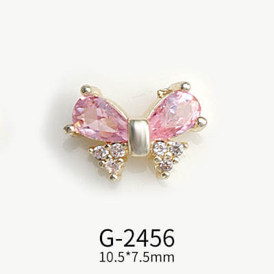 Nail Charm Pink Rose with Bow Rhinestone 2pcs/Bag -HY1597