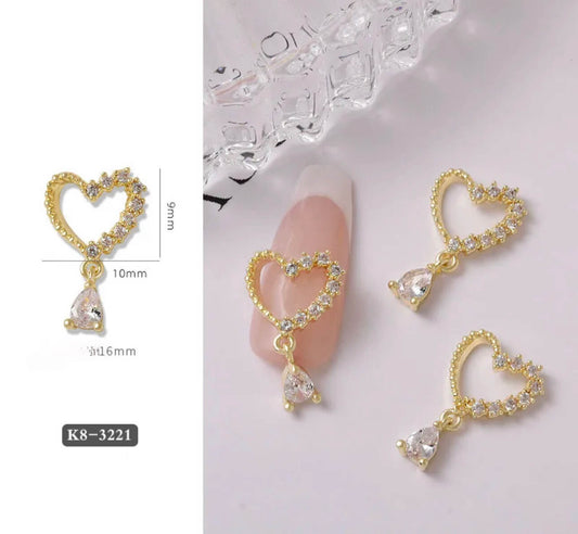 Nail Charm Heart Diamond 2pcs/bag.