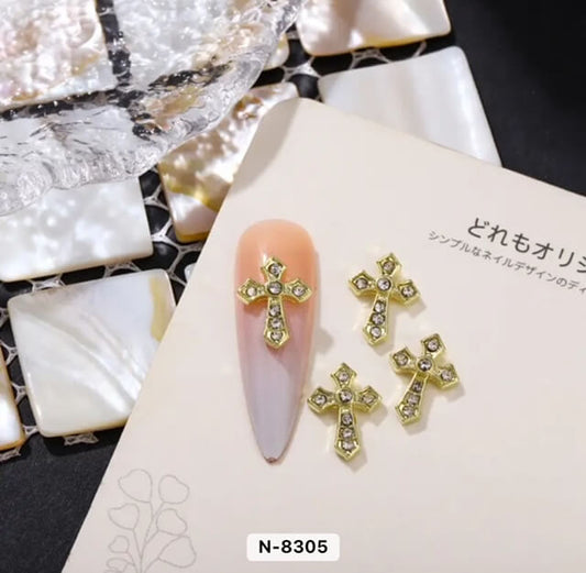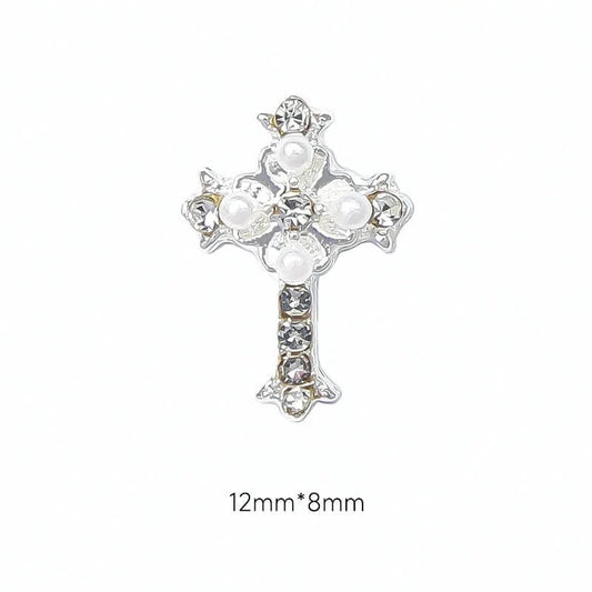 Nail Charm 3D Cross Diamond Pearl 2 pcs/bag