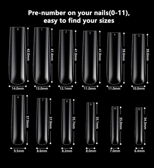 Nail Tip Extension No C Curve Square XXX- Long Nail Tip 504pcs-Size 0-11