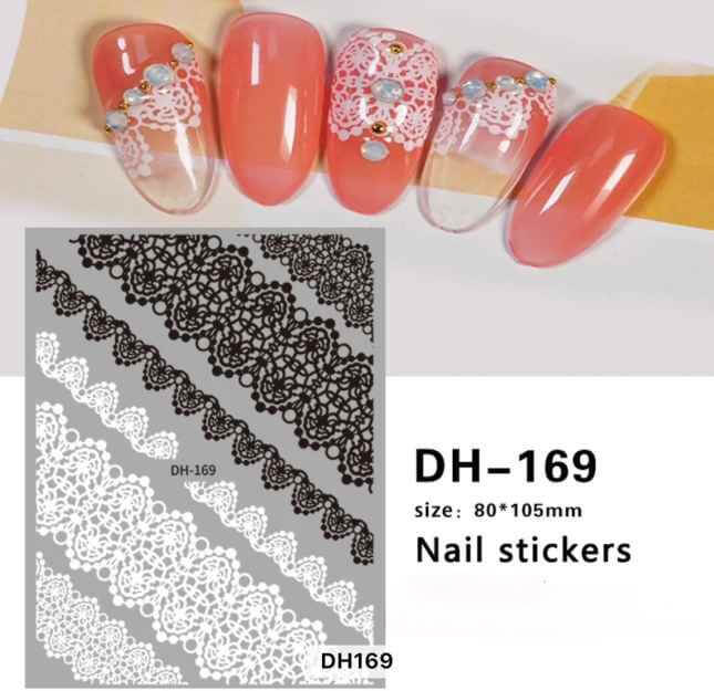 Nail Sticker Lace Black and White - DH169