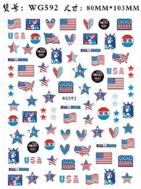 Nail Sticker 4th Of July American Flag WG592