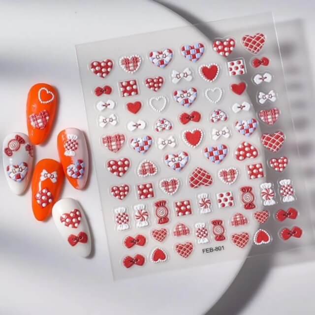 Nail Sticker Red Heart White Bow FEB801